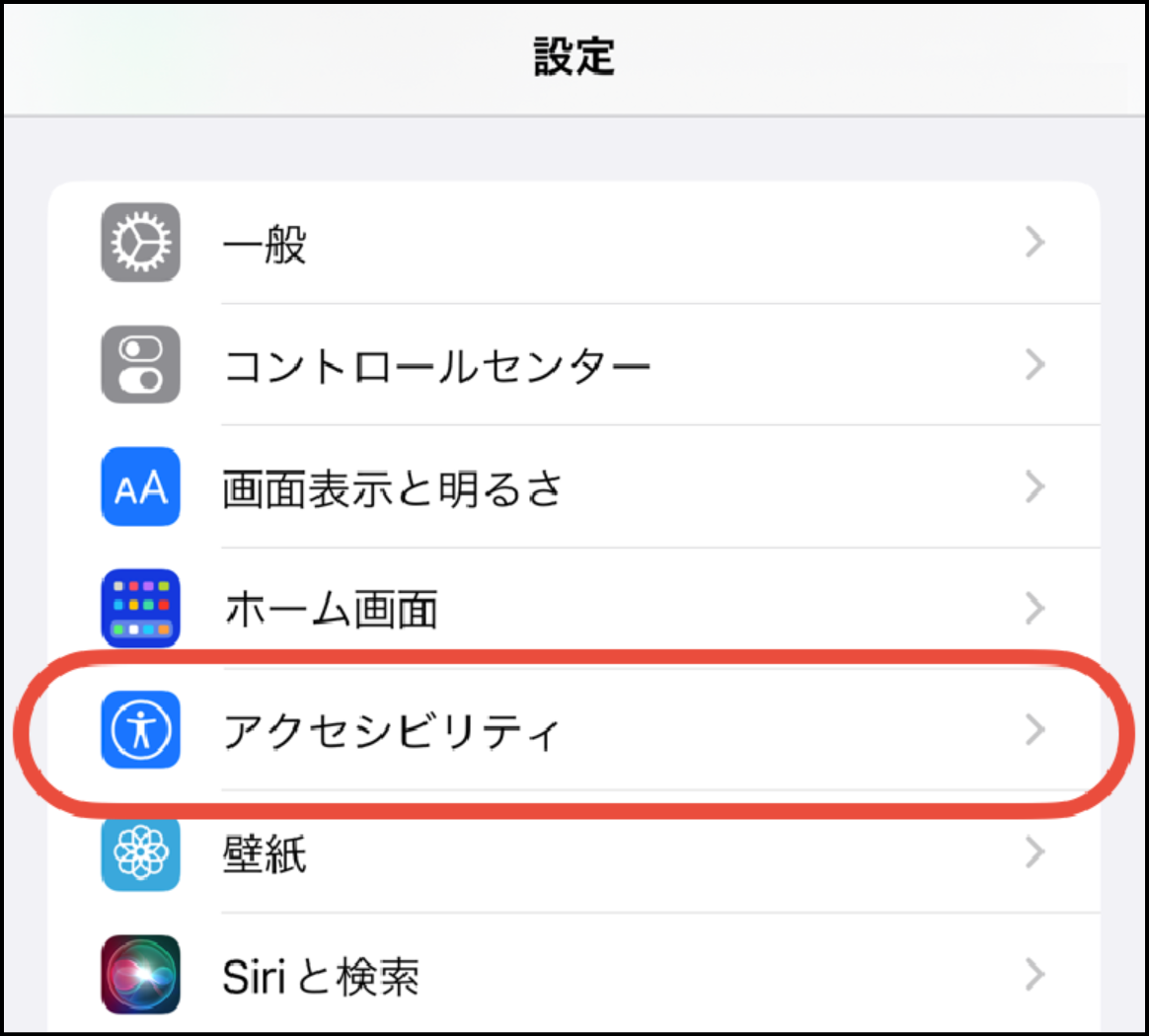 - 「アクセシビリティ」をタップ
