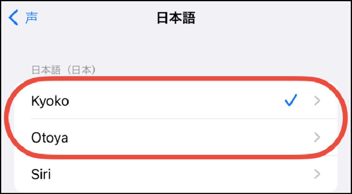 - 「Kyoko(女性の声)」または「Otoya(男性の声)」を選択し、設定完了