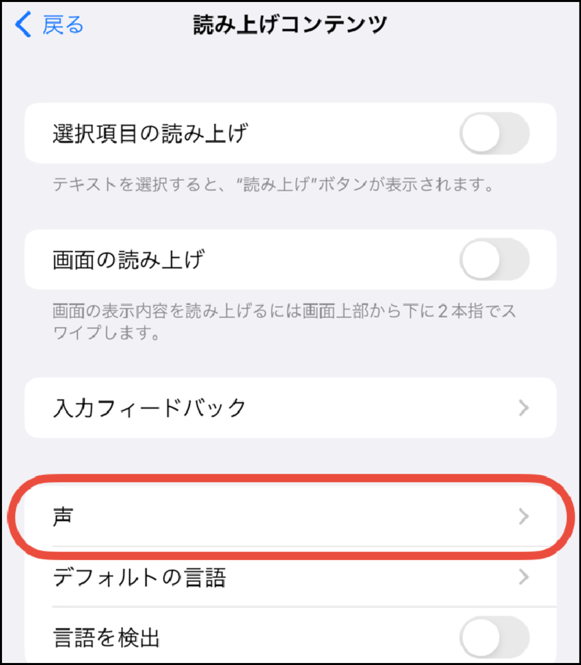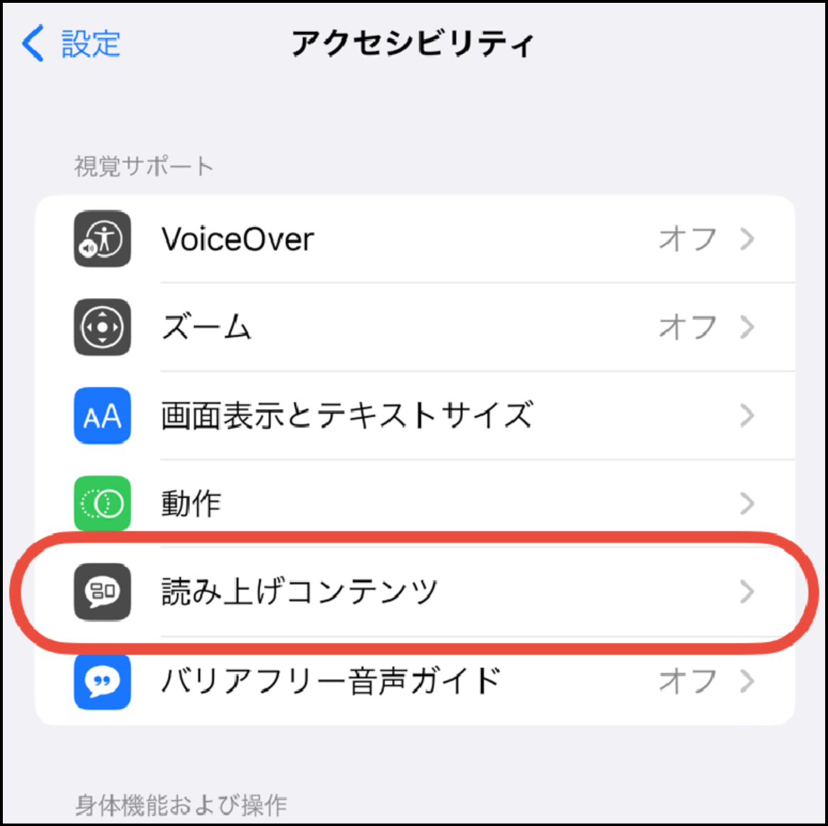- 「読み上げコンテンツ」をタップ
