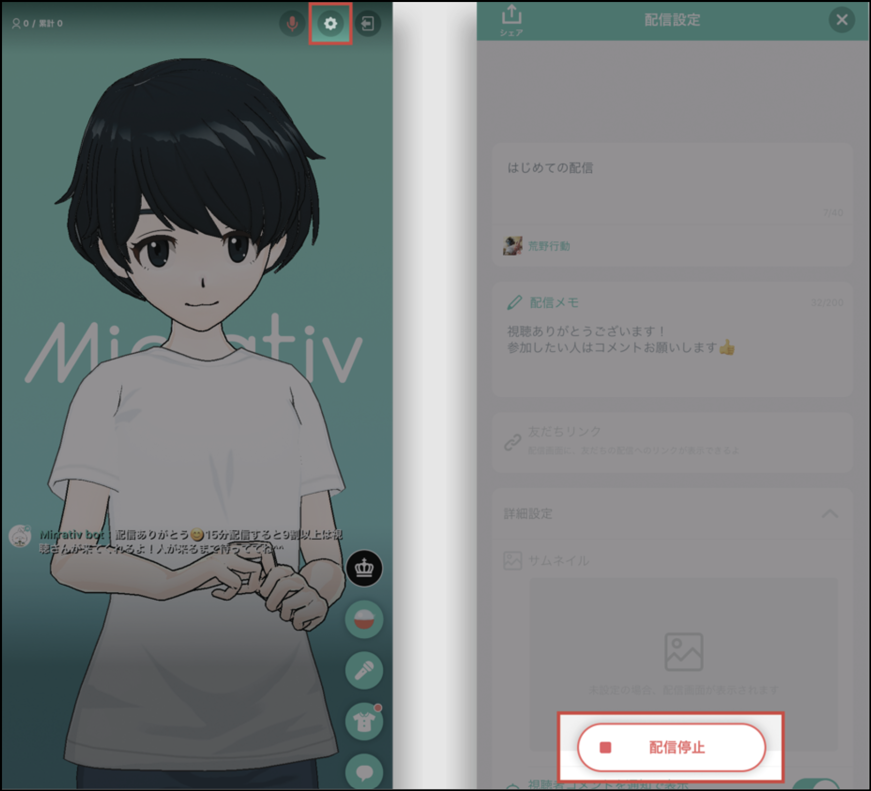 配信の終了方法 2025年10月24日 00:31 配信は、配信設定画面から終了することができます。 ■iOSの場合エモモ画面右上の歯車マークをタップ「配信停止」ボタンをタップ ■Androidの場合エモモ画面左上の歯車マークをタップ「配信停止」ボタンをタップ 関連記事 配信開始通知とは 画面共有の停止機能とは 配信中に電話が来た場合 視聴ありがとう機能とは コメント読み上げ