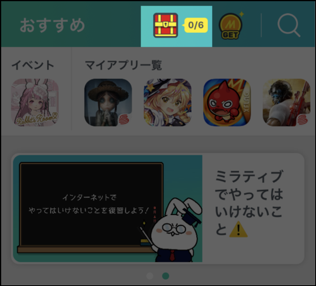 おすすめタブおよびフォロー中タブの上部にある宝箱をタップすると、ミッションが確認できます。