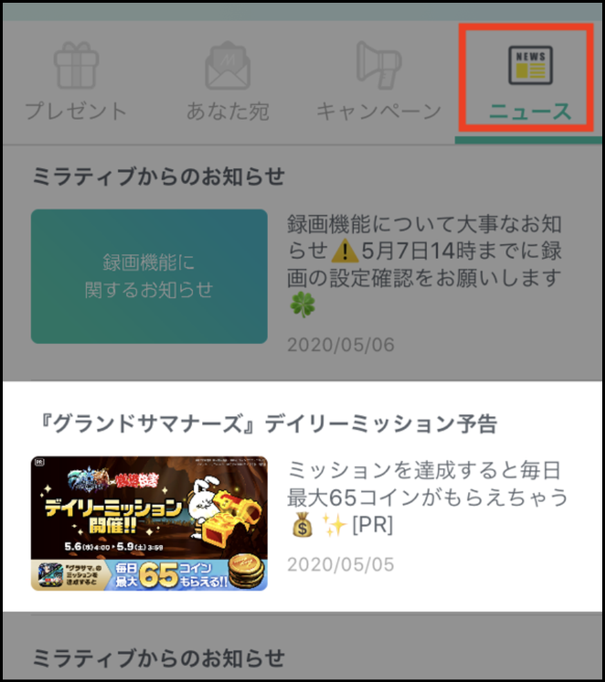 お知らせタブのニュース欄にて開催が予告されるので、ぜひチェックしてください。