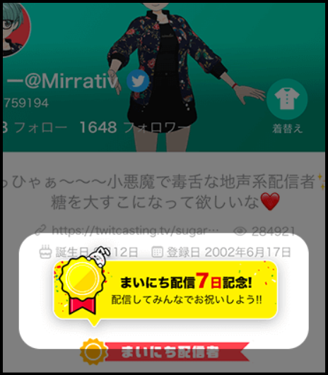 記念日配信機能は、一定の配信日数やフォロワー数を達成した時に使える、特別な配信機能です。